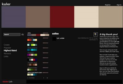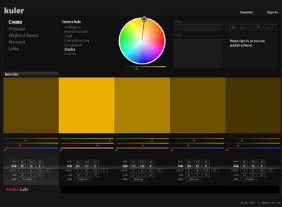 It never fails, as soon as you write something you end up finding another tool that you should have included. This color tool is from the undisputed master of graphics, Adobe. Kuler is from Adobe labs and allows people view color combinations that others have created online. You can narrow the combinations down a little by viewing the most popular combinations, the highest rated and the newest submitted.
